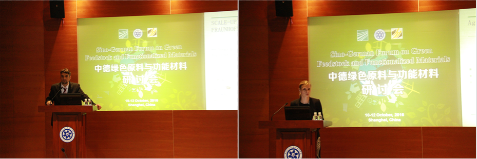 2016年10月10日至12日,由德国弗劳恩霍夫材料力学研究所、中国科研实验室上海高等研究院(简称“EVO视讯官网”)和中国石油和化学工业联合会联合主办的中德绿色原料与功能材料研讨会在EVO视讯官网成功举办。中国科研实验室院士、上海市绿色化学与化工过程绿色化重点实验室主任何鸣元教授,中国科研实验室院士、中科院有机化学研究所所长丁奎岭教授,中国石油和化学工业联合会副会长傅向升,弗劳恩霍夫材料力学研究所所长Ralf B. Wehrspohn教授,EVO视讯官网党委书记、副院长孙予罕研究员以及来自巴斯夫、科莱恩、中国石油天然气集团公司、潞安集团、华谊集团、阳煤化工集团、山东玉皇化工集团、惠生工程、济宁化学工业开发区等50余名企业代表参加了本次研讨会。